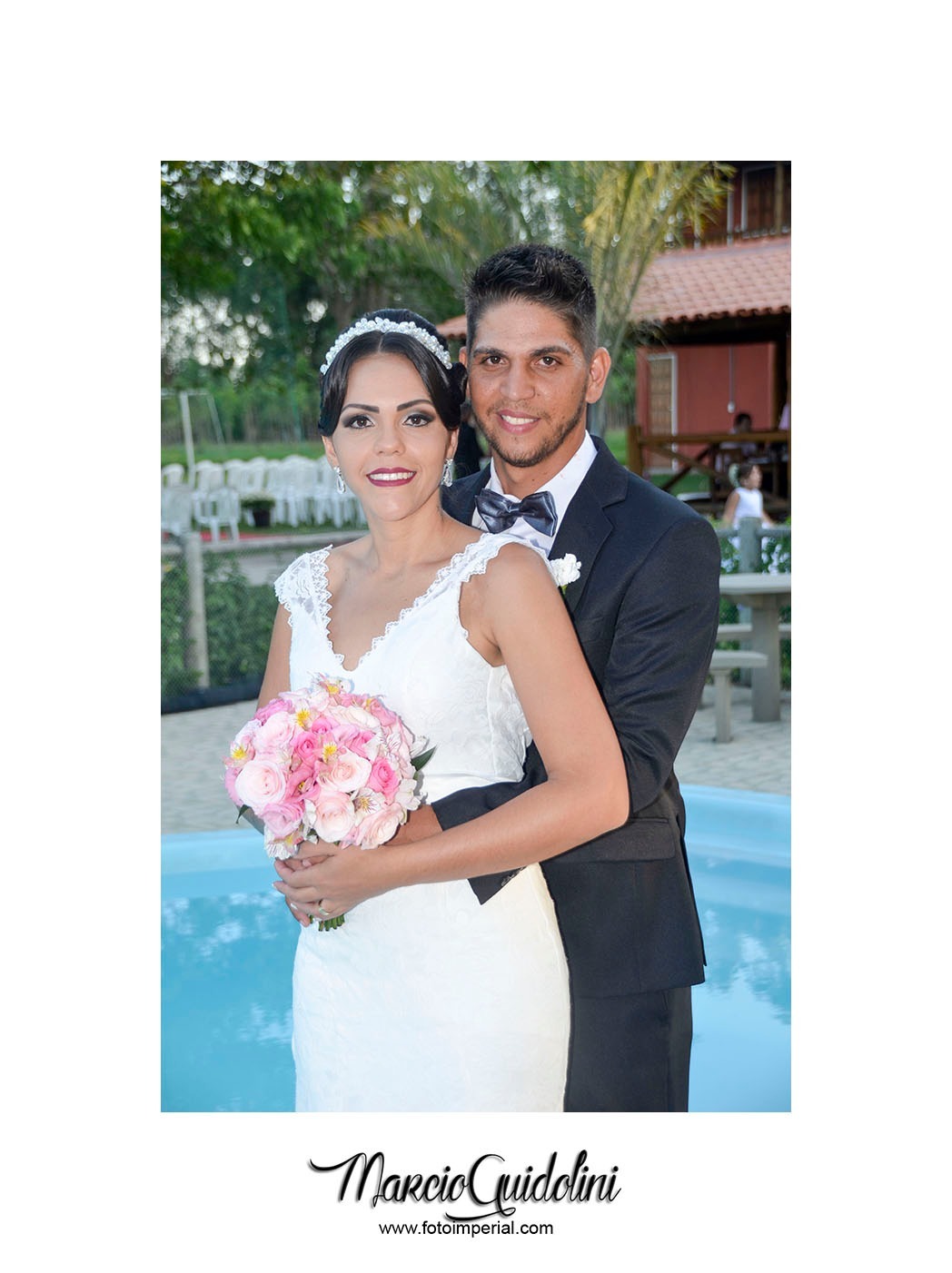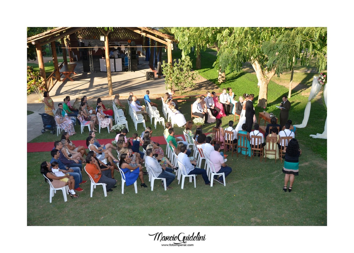 Padrinhos chegando, convidados, tudo pronto.